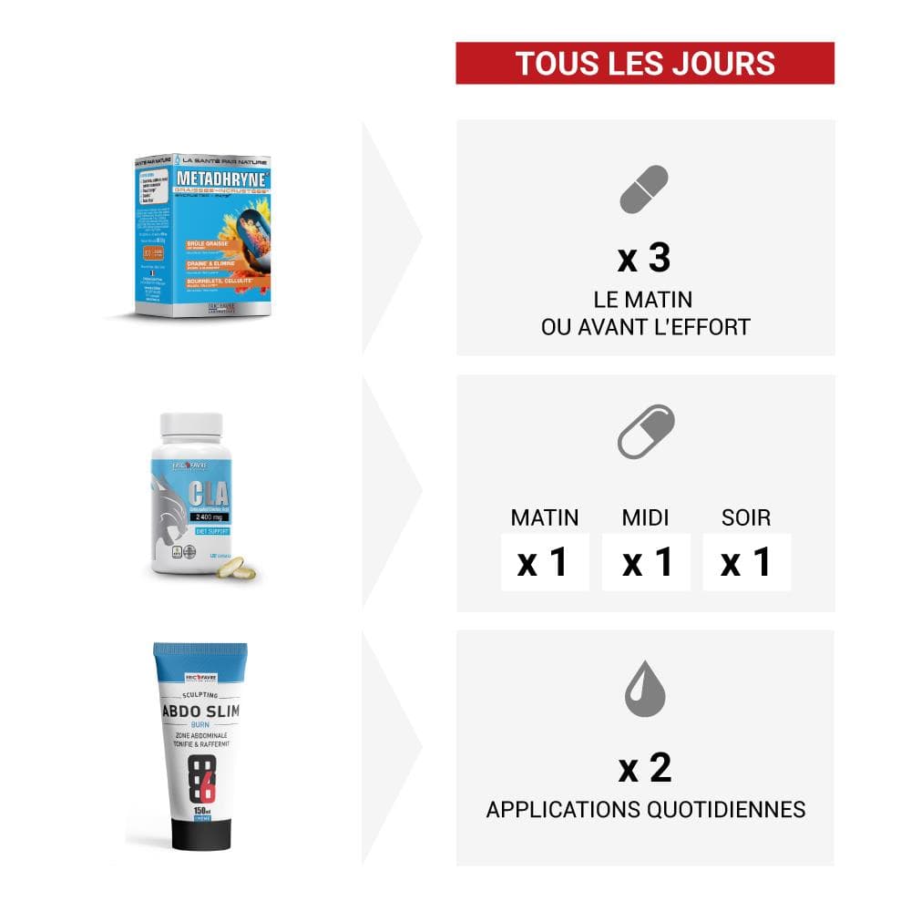 Appliquer la crème 2 fois par jour, matin et soir. Après la douche appliquer sur l’abdomen et masser doucement le gel avec des mouvements circulaires jusqu’à absorption totale pour de meilleurs résultats. La crème peut être utilisée sur d’autres zones à affiner : bras, hanches, fesses, cuisses.