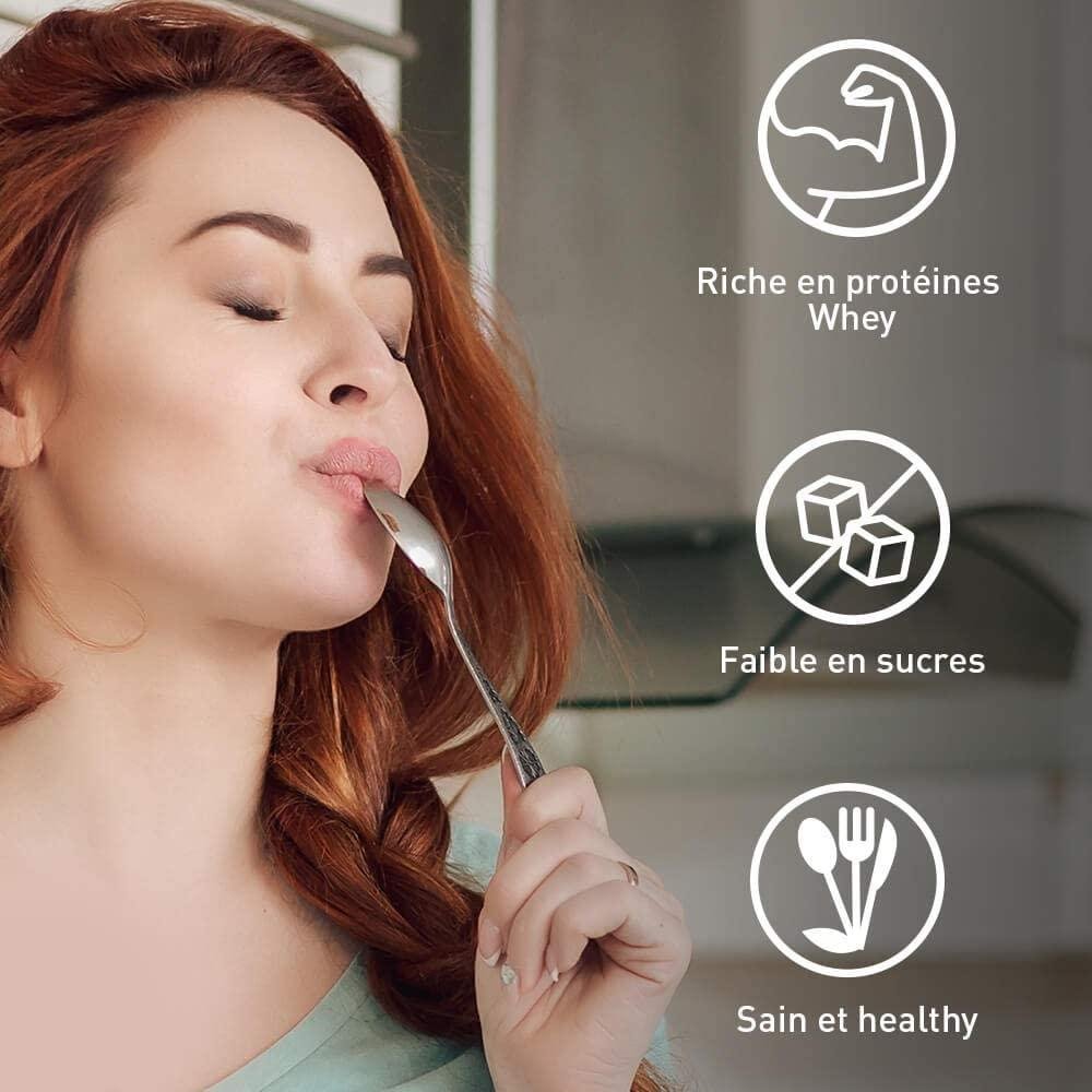 Plus besoin de culpabiliser, Chocotella c’est la pâte à tartiner rêvée, riche en protéines et faible en sucre, elle est toujours aussi onctueuse !