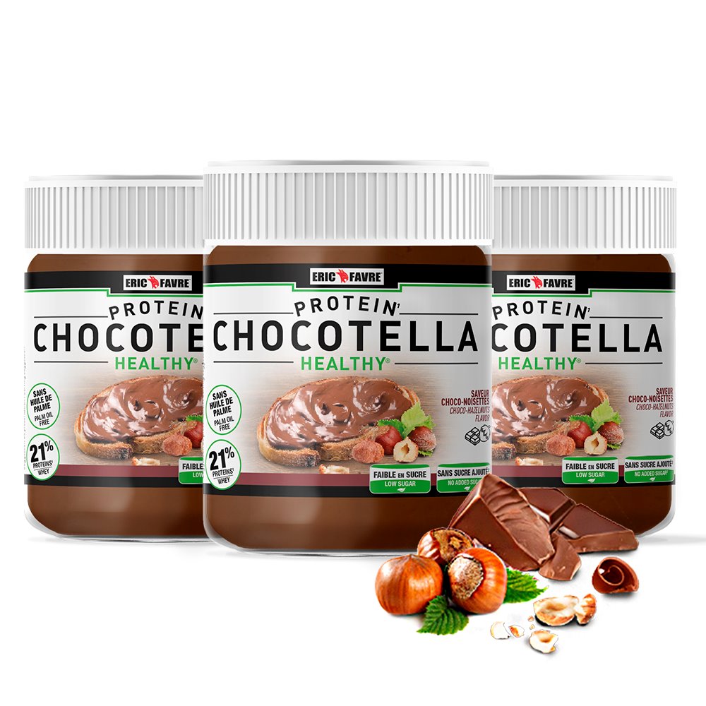 Plus besoin de culpabiliser, Chocotella c’est la pâte à tartiner rêvée, riche en protéines et faible en sucre, elle est toujours aussi onctueuse !