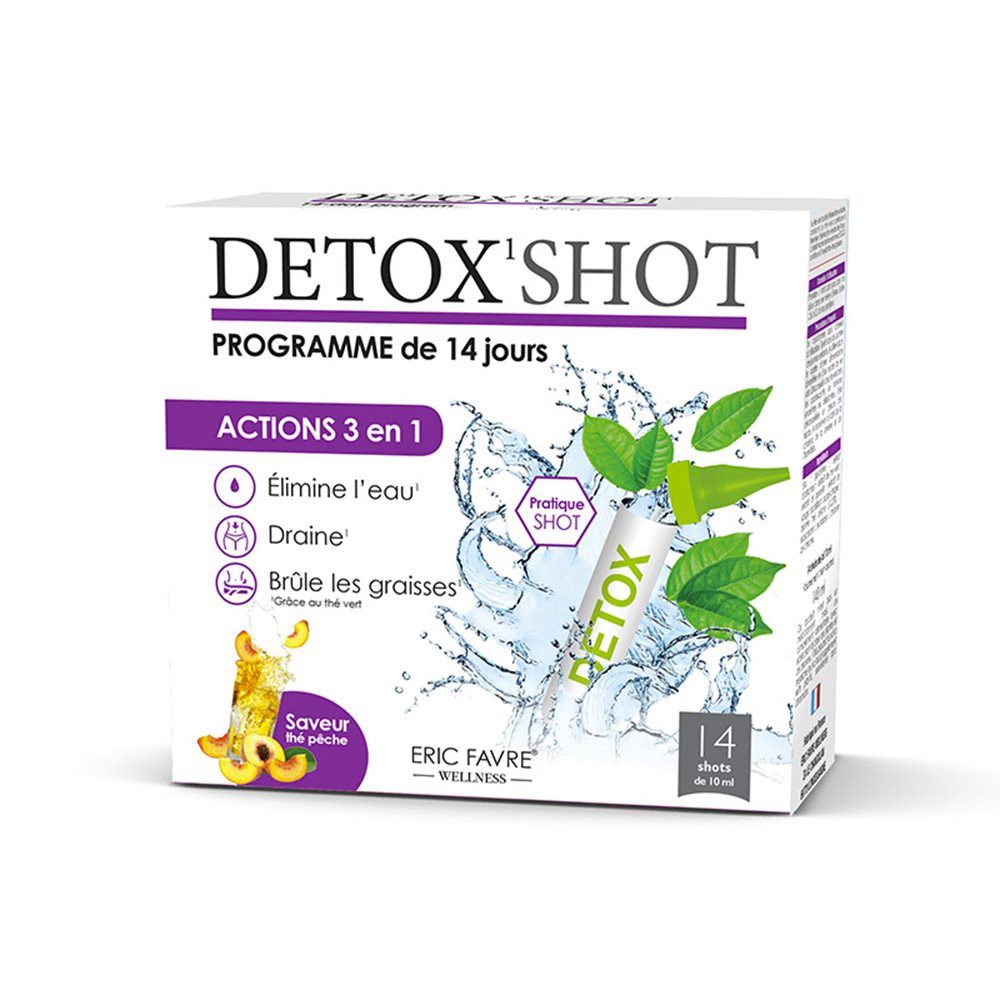 Prendre 1 shot par jour, pur ou dilué dans un verre d’eau. Boire 1.5 l à 2 l d’eau par jour (programme de 14 jours.)