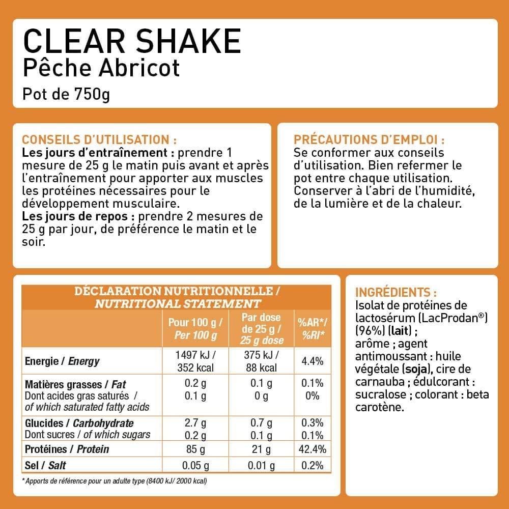 Clear Shake - Iso Protein Water saveur Pêche - Abricot 750g
