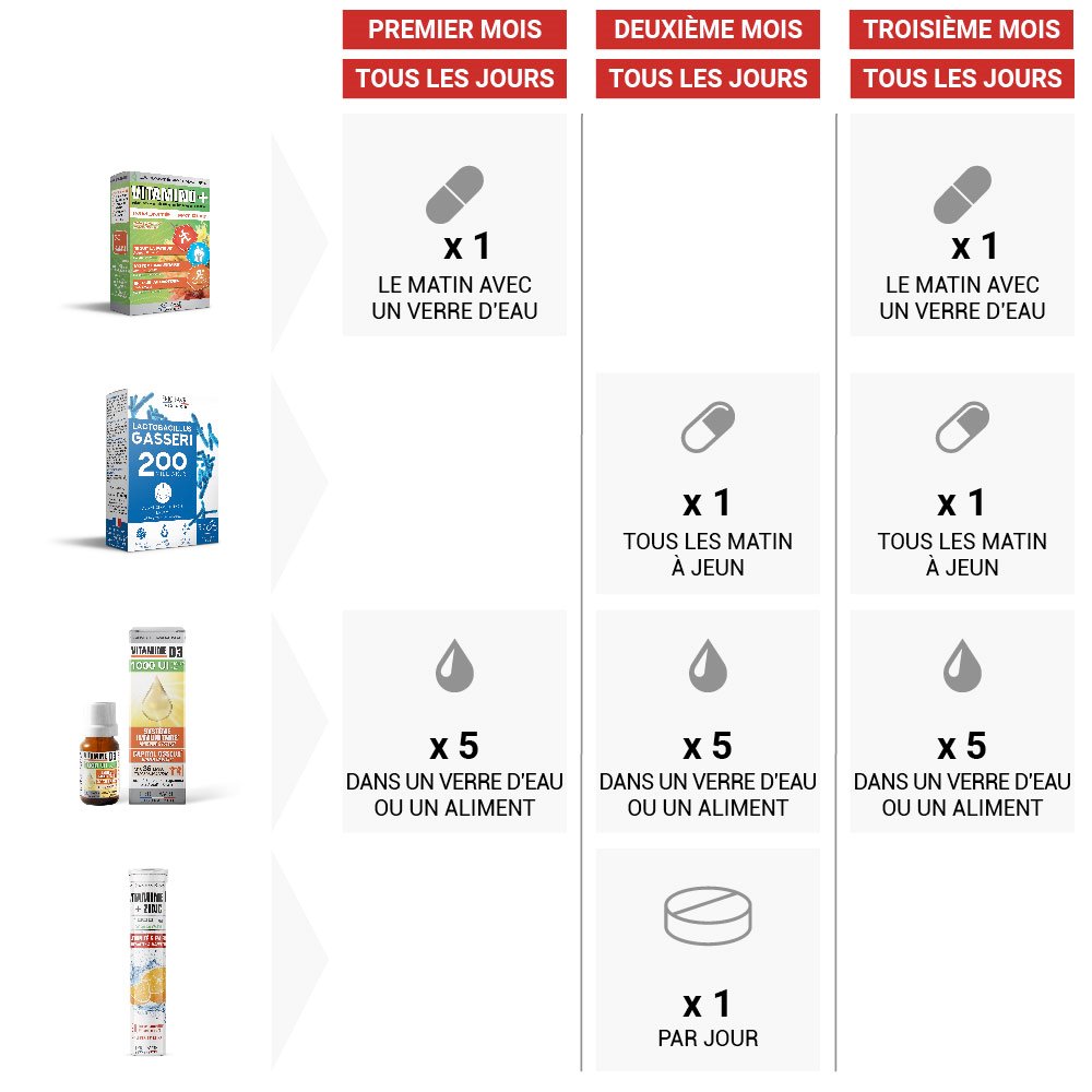 A chaque changement de saison, notamment en Automne/Hiver, notre organisme est soumis à rude épreuve et doit faire face à la fraicheur des températures, une fatigue plus accrue... Ne laissez pas votre système immunitaire s’affaiblir et prenez les devants en intégrant ce programme de 3 mois pour retrouver votre vitalité et toutes vos forces !